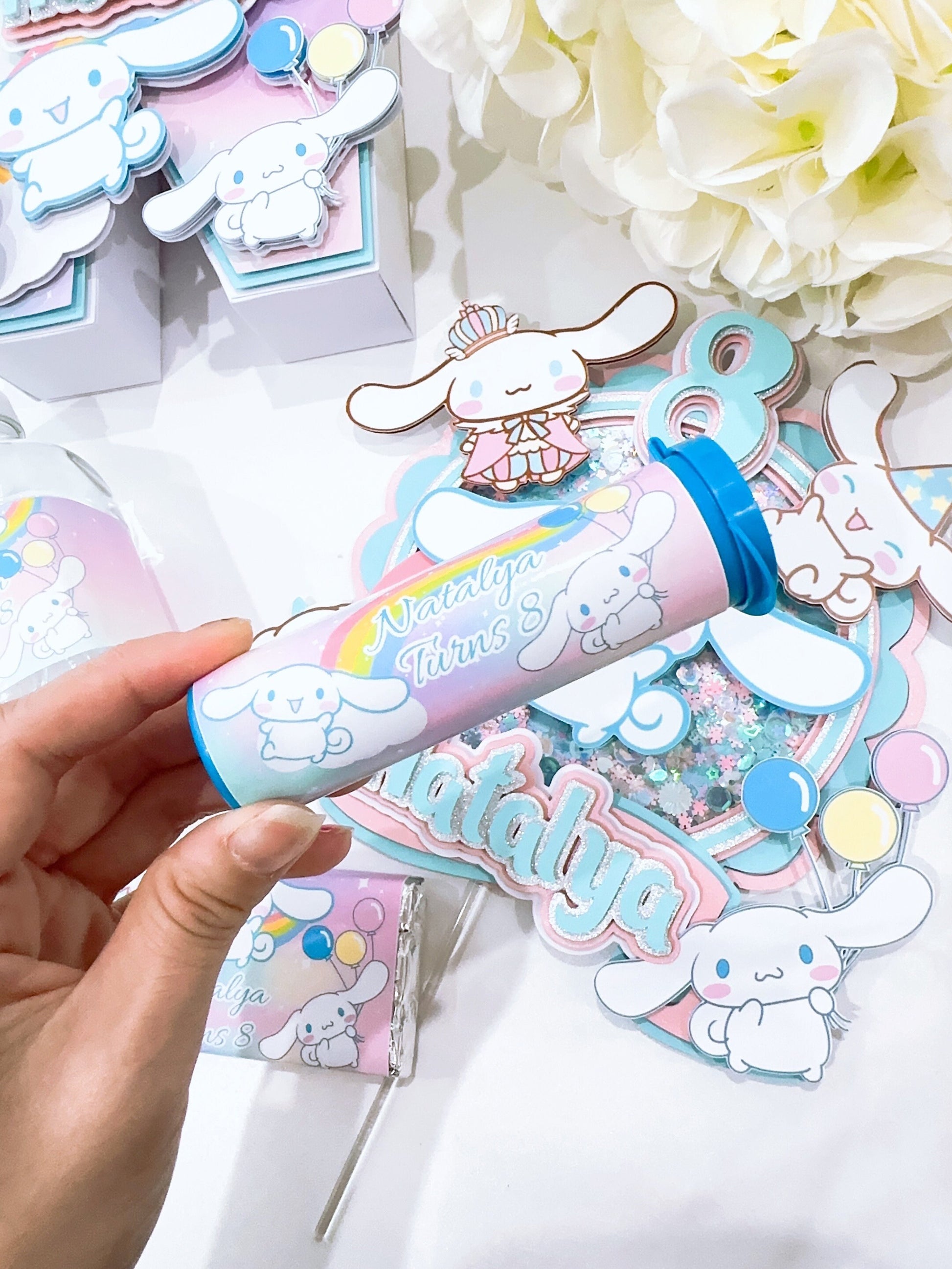 This CinnamonRoll Themed Mini M&M Chocolate Tubes Stickers is a great way to add a wow factor to your child's party. You can personalize this design by adding the name and age of the birthday child. These stickers are for 40g Mini M&M Chocolate Tubes. Stickers are being made with quality sticker paper and high-quality printing.