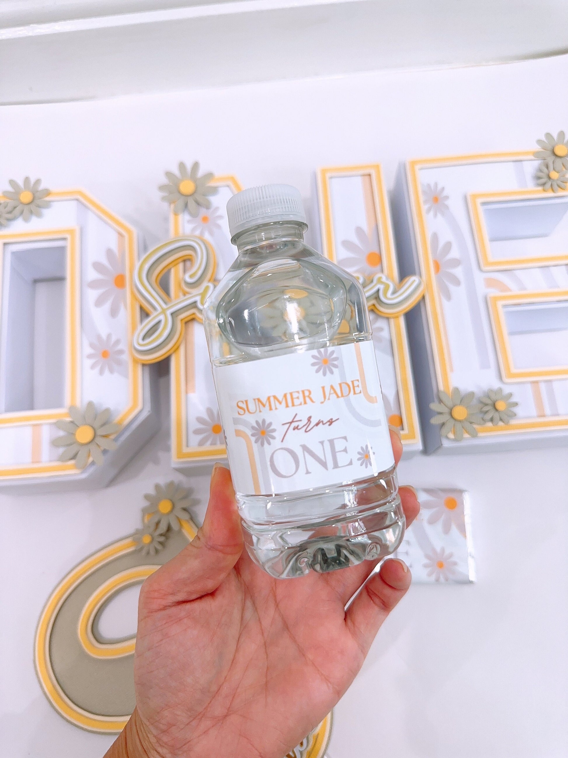 This Daisy Mini Water Bottle (250ml) is a great way to add a wow factor to your child's party. You can personalize this design by adding the name and age of the birthday child. These stickers are for 250ml Mini Water Bottles. Stickers are being made with quality waterproof sticker paper and high-quality printing.