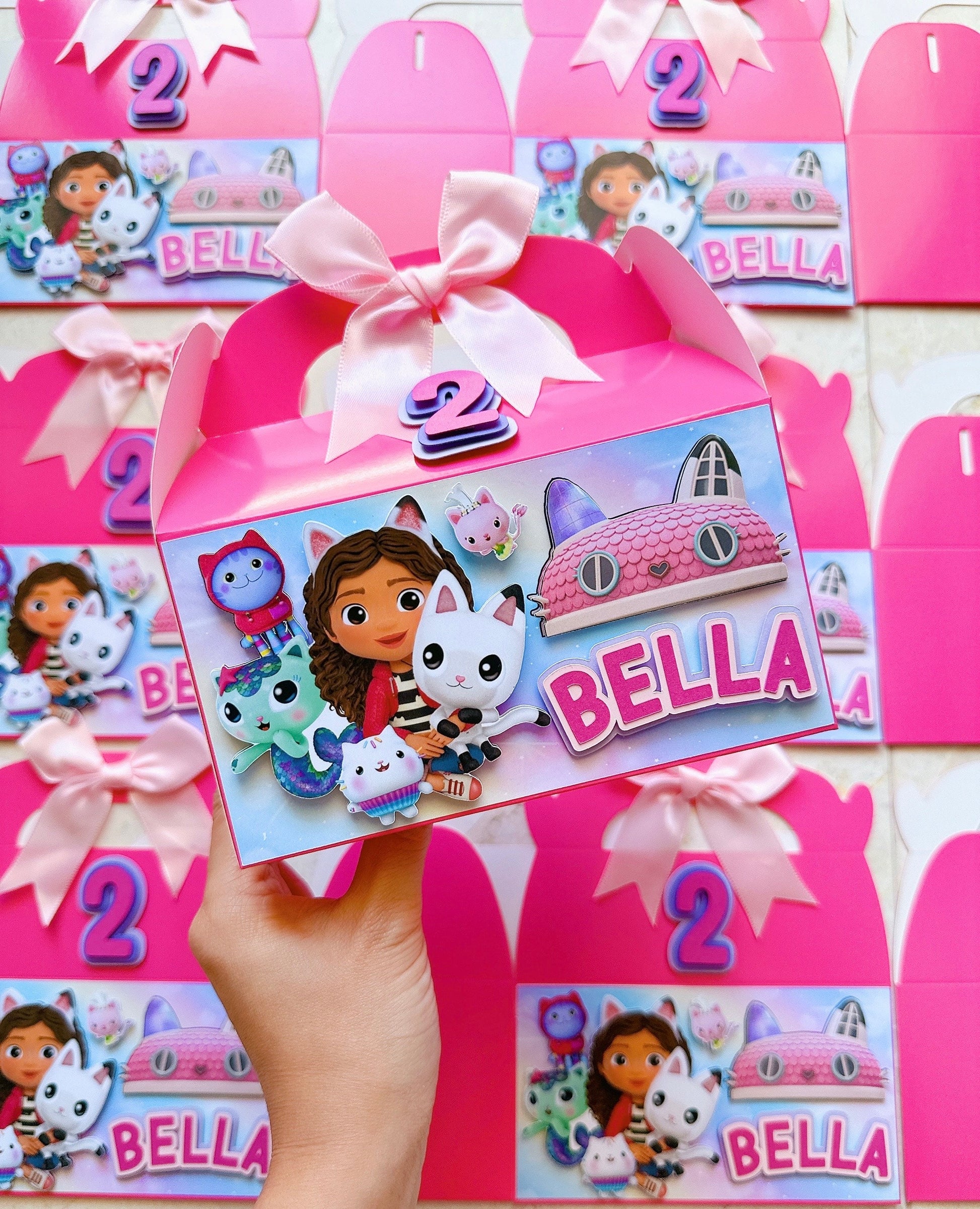 This handmade Gabby Dollhouse 3D favor box is a great way to add a wow factor to your child's party. You can personalize this box by adding the name of the birthday girl or individual name of each of the guests (Please add on the individual names option to your order). Boxes has been made with good quality cardstock and amazing prints.