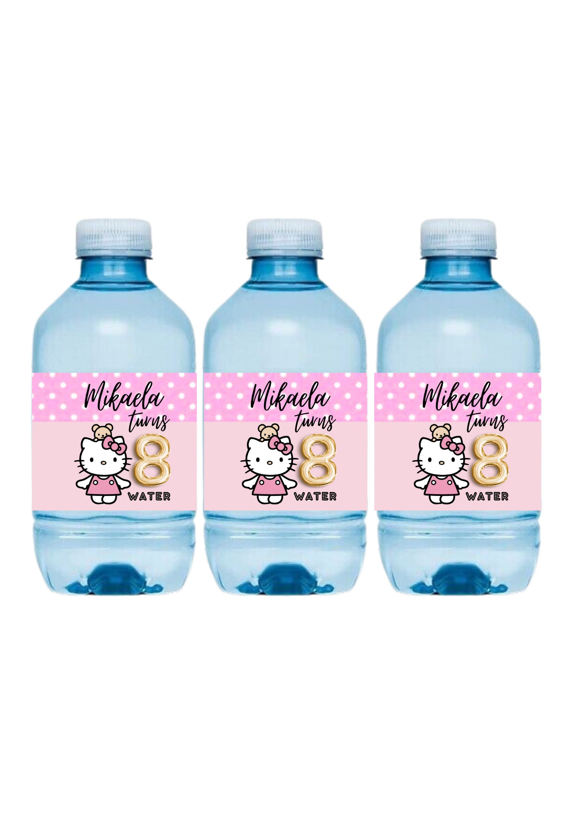 This Hello Kitty Mini Water Bottle (250ml) is a great way to add a wow factor to your child's party. You can personalize this design by adding the name and age of the birthday child. These stickers are for 250ml Mini Water Bottles. Stickers are being made with quality waterproof sticker paper and high-quality printing.