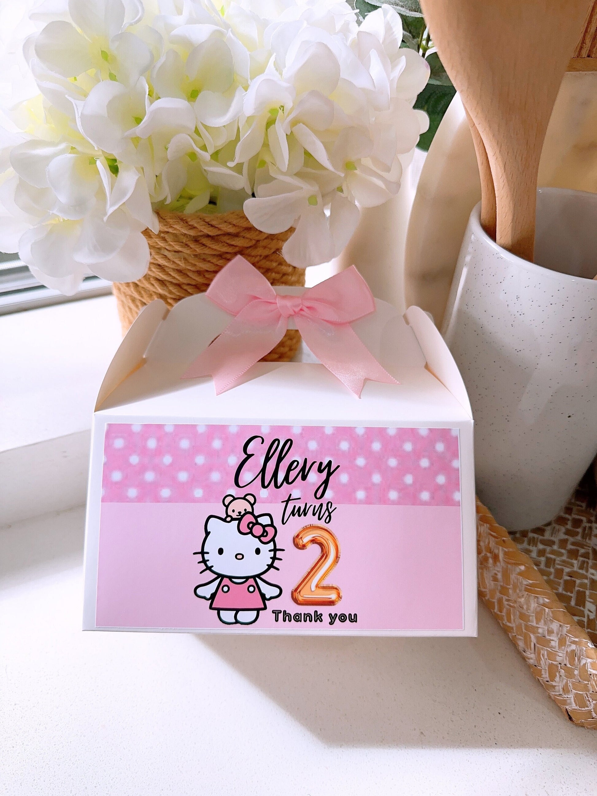 This handmade Hello Kitty Sticker Favour Box is a great way to add a wow factor to your child's party. You can personalize this box by adding the name of the birthday child. Boxes has been made with good quality cardstock and amazing prints.